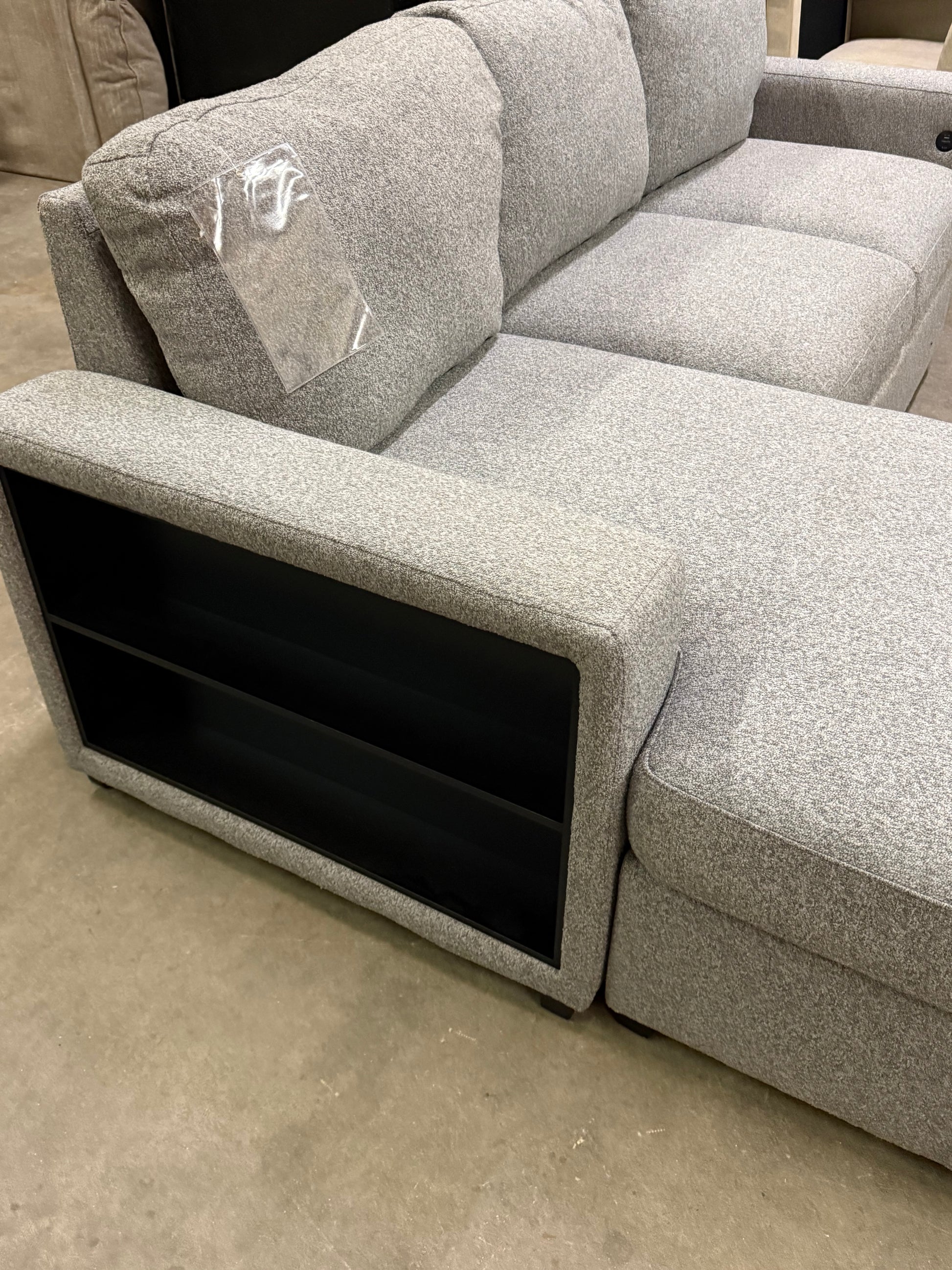 -Has pullout bed, shelves, and USB charges on the side arms