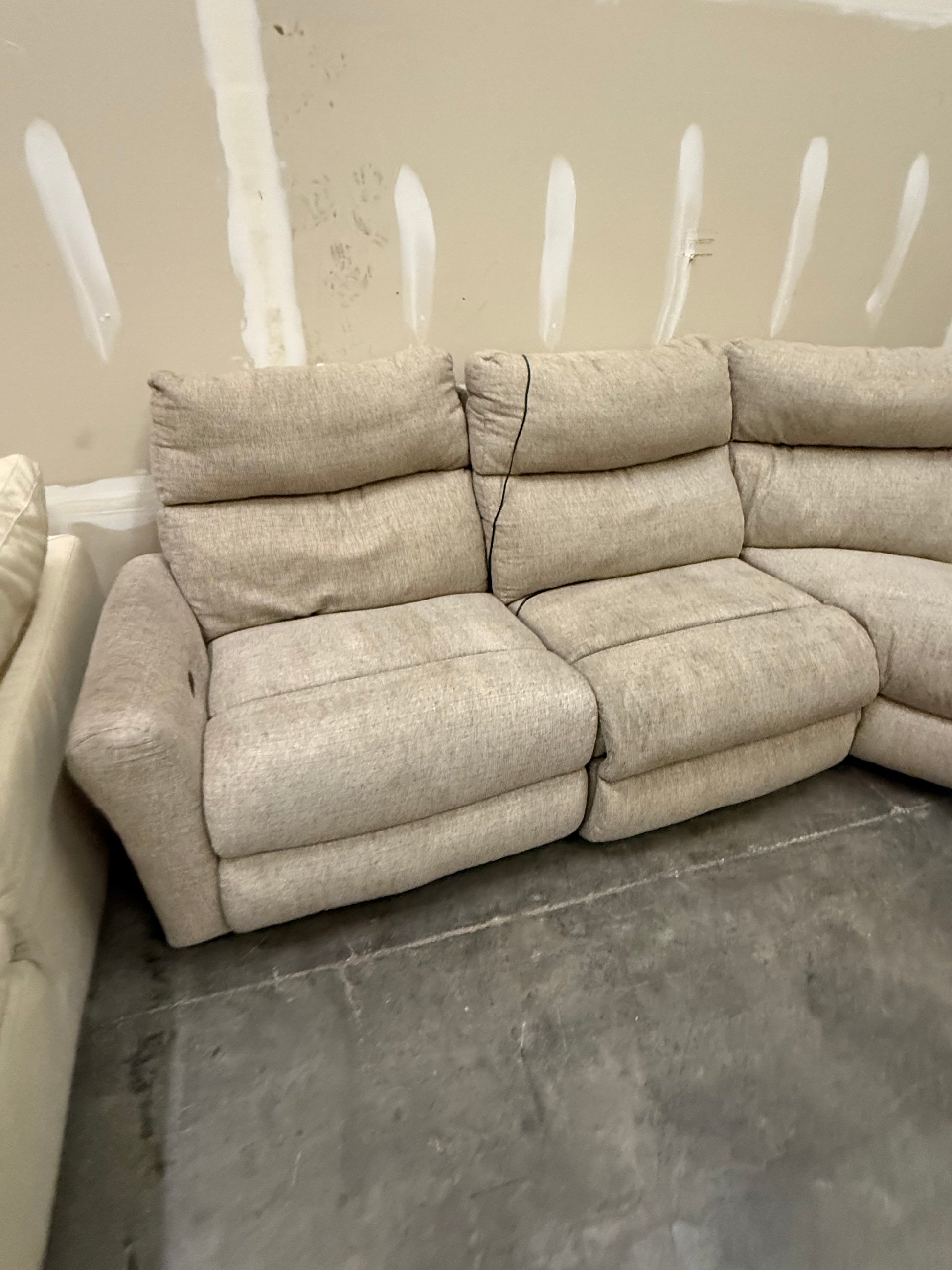 This sectional is in good overall condition and comes in five pieces with the ottoman It is from a pet-friendly, smoke-free home. One recliner doesnt work.